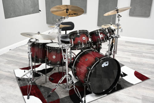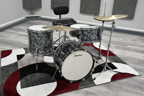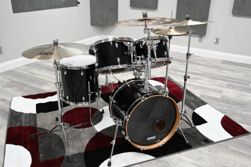 DW Collector’s Seres 7-piece kit, Purpleheart Black Burst Black Nickel, 23X18, 8X7, 10X8, 12X9, 14X12, 16X14, Paiste Formula 602 17” Crash, 19” Crash, 15” Hats, Paiste Masters 21” Dry Ride, 14” Paiste Dark Energy Remote Hats, double kick DW9000XF pedals, DW9000XF hat pedal. Ludwig Ringo Liverpool 4-Piece kit, 100th anniversary badged, Black Oyster Pearl, 14X22, 9X13, 16X16, 5X14, Zildjian Custom K Dark 20” Ride, 16” Crash, 18” Crash, 14” Hats, DW 5000 pedal. Gretsch Catalina Club, Piano Black, 14x18, 8x12, 9x13, 14,14, 5x14, Paiste Master Dark21” Ride, 19” Crash, 17” Crash, 16” Crash, 15” Hats, 10” Splash, DW5000 pedal. Slingerland Niles 1965 kit, Black Diamond Pearl, 14x22, 16x16, 9x13, 5.5x14, Zildjian Custom K 16” Crash, Zildjian Avedis 20” Ride, Paiste Staople 14” Hats, DW5000 pedal. Kent Kenmore NY 1960 kit, Gold Sparkle, 14x20, 15x15, 9x13, 5.5x14, Zildjian Custom K 20” Ride, 16” Crash, 14” Hats, Ludwig Speed King pedal. Roland TC-20S V-Pro 7-piece E-Drum kit, Black, TD20 Controller, 3ea PD125 Tom Triggers, 1ea KD120 Kick Trigger, 1ea PD125 Snare Trigger, 2ea CY14C Crash Triggers, 1ea CY15R Ride Trigger, 1 CY6 Dual Cymbal Trigger, 1ea VH12 Hat Trigger, Iron Cobra pedals. Paiste Symphonic Signature Gong, 30” Bronze.