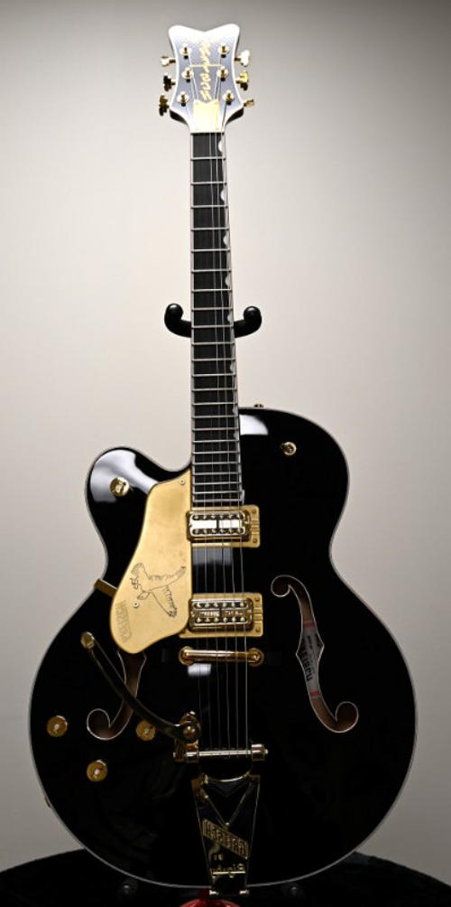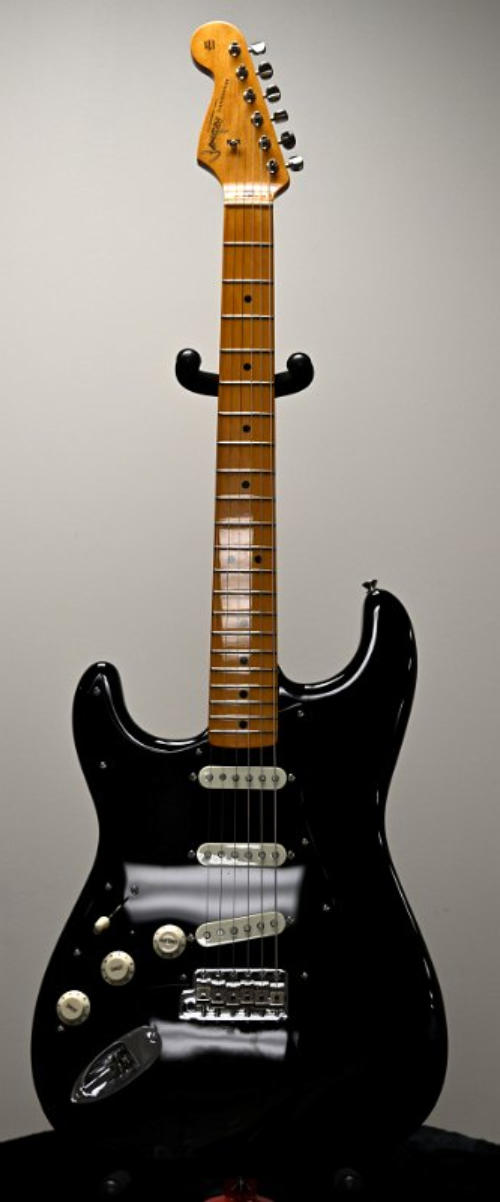 Fender David Gilmour Custom Shop Black Strat Relic Fender David Gilmour Custom Shop Black Strat NOS Fender Eric Clapton Custom Strat Blackie Fender Telecaster American Professional II Black Fender Ebony LE HSS Strat Black Fender Maple Strat, P90 Pickups, Black Fender 70’s Thin Skin Strat, Natural Fender American Professional Precision Bass Black Fender Fullertron Stratocaster Ukulele Gibson Custom Shop SG Black Ebony Gibson SG 2008 Classic P90’s Cherry Gibson SG 2008 Standard P90’s Cherry Gibson Flying-V Custom 2007 Reissue Silverburst Gibson RD Artist 40th Anniversary Black Gibson RD Artist 40th Anniversary Bass Black Gibson Les Paul Studio 2007 Black Gretsch Custom Shop Black Falcon Bigsby Black Epiphone USA Casino Hollow Body Vintage Burst